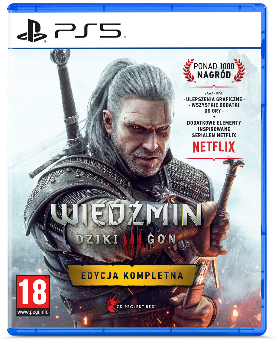 Do sprzedania nowa gra na konsolę PS5. Pudełko z grą w oryginalnej folii. Uwaga: Przedstawione zdjęcia są jedynie podglądowe, zastrzegamy sobie prawo do sprzedawania gry z inną okładką oraz w innej wersji wydania tj. premierowej, platynowej, essentials itp… Przy wysyłce w pierwszej kolejności staramy się wysyłać wersje premierowe danej gry. Nie wszystkie gry mają okładkę w języku polskim/angielskim jednak wersja językowa samej gry jest taka jak w opisie. W przypadku wysyłki wszystkie używane gry są zaklejane specjalną plombą, zerwanie jej uniemożliwia zwrot gry bez wskazania ważnego powodu, w przypadku nowych gier funkcję plomby spełnia oryginalna folia. Wiedźmin 3: Dziki Gon Edycja KompletnaNazywasz się Geralt z Rivii i jesteś wiedźminem w świecie zniszczonym wojną i pełnym krwiożerczych bestii. Twoje zadanie? Musisz odnaleźć Ciri — swoją przybraną córkę obdarzoną mocą zdolną uratować świat lub pogrążyć go w ruinie.Wiedźmin 3: Dziki Gon - Edycja Kompletna składa się z podstawowej wersji gry oferującej ponad 100 godzin rozgrywki w otwartym świecie, a także dwóch ogromnych rozszerzeń fabularnych: Serca z Kamienia oraz Krew i Wino, które dają dodatkowe 50 godzin zabawy!Oprócz całej wydanej wcześniej dodatkowej zawartości ta edycja gry Wiedźmin 3: Dziki Gon zawiera m.in. dedykowany tryb foto, zupełnie nowe przedmioty inspirowane serialem Wiedźmin od Netfliksa — miecze, pancerze oraz alternatywne stroje — i nie tylko!GRA USPRAWNIONA Z MYŚLĄ O PLAYSTATION 5Odkrywaj unikalny świat mrocznego fantasy jak nigdy przedtem. Niniejsze wydanie gry Wiedźmin 3: Dziki Gon wzbogacone jest o szereg usprawnień wizualnych oraz technicznych, w tym liczne ulepszenia graficzne, szybsze czasy ładowania, zintegrowany szeroki wybór modów stworzonych przez społeczność, ray tracing w czasie rzeczywistym, wsparcie 3D audio i wiele więcej — przygotowanych z myślą o dodatkowej mocy konsoli PlayStation 5. Gra wykorzystuje również funkcje kontrolera DualSense w postaci wibracji haptycznych i adaptacyjnych triggerów podczas rozgrywki, które pozwolą ci zatopić się jeszcze bardziej w świat Wiedźmina!Główne cechy:GRAJ JAKO DOSKONALE WYSZKOLONY ŁOWCA POTWORÓWWiedźmini — od wczesnego dzieciństwa poddawani mutacjom i rygorystycznym treningom — cechują się nadludzkimi zdolnościami, siłą oraz refleksem. Tym samym stanowią jedyną przeciwwagę dla gnębiących świat potworów.• Siej postrach wśród wrogów jako zawodowy łowca potworów uzbrojony w szereg broni, które możesz ulepszać, eliksiry mutagenne i magię bojową.• Poluj na różnorodne niespotykane stwory — od dzikich bestii grasujących na górskich przełęczach po magiczne drapieżniki czające się w zaułkach gęsto zaludnionych miast.• Zapłatę wykorzystuj na ulepszanie uzbrojenia i pancerza lub wydawaj na zakłady w wyścigach konnych, grę w karty, pojedynki na pięści i inne nocne rozrywki.WKROCZ DO OTWARTEGO, MROCZNEGO ŚWIATA FANTASYOlbrzymi, otwarty świat Wiedźmina, stworzony z myślą o niekończących się przygodach, wyznacza nowe standardy w zakresie rozmiaru, głębi i złożoności.• Podróżuj przez fantastyczny otwarty świat: badaj zapomniane ruiny, jaskinie i wraki okrętów; odwiedzaj miasta, by handlować z kupcami oraz kowalami; poluj na wielkich równinach, w górach i na morzu.• Utrzymuj kontakty ze zdradzieckimi generałami, przebiegłymi wiedźmami i zepsutymi członkami rodzin królewskich, by otrzymywać zlecenia na swe usługi.• Dokonuj wyborów wykraczających poza prosty podział na dobro i zło, a następnie mierz się z daleko idącymi konsekwencjami.PODĄŻAJ TROPEM DZIECKA NIESPODZIANKIPrzyjmij najważniejsze w życiu zlecenie i spróbuj odnaleźć swoją przybraną córkę obdarzoną mocą zdolną uratować świat lub pogrążyć go w ruinie.• Przemierzaj ogarnięty wojną świat tropem Ciri, w której żyłach płynie Stara Krew, dającą jej wyjątkową moc.• Stań do nierównej walki z okrutnymi władcami, duchami dziczy, a nawet grozą z innego wymiaru.• Wybierz własną drogę w świecie, który być może nie zasługuje na ratunek.